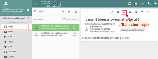 Bước 1: Mở email trong Inbox và nhấn chọn Trả lời (Reply)