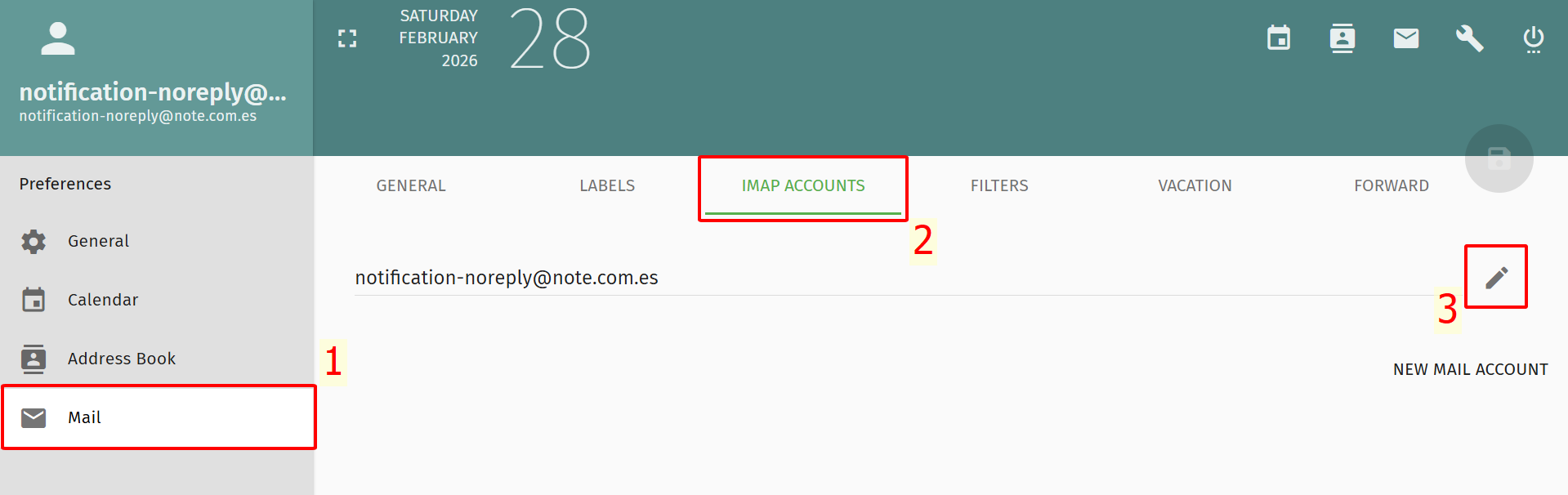 (2) Chọn IMAP ACCOUNTS trên thanh công cụ ngang