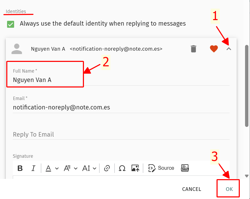 (2) Đổi tên tại phần FULL NAME